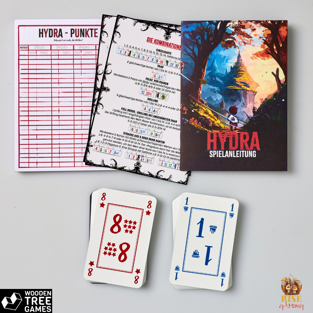 Also habe ich mich kurzerhand entschieden, HYDRA im Eigenverlag, auf eigene Kosten und eigenes Risiko, herauszubringen. Rise Gaming, der Verlag und die Veröffentlichung von Hydra-Das Kartenspiel waren der nächste Schritt!