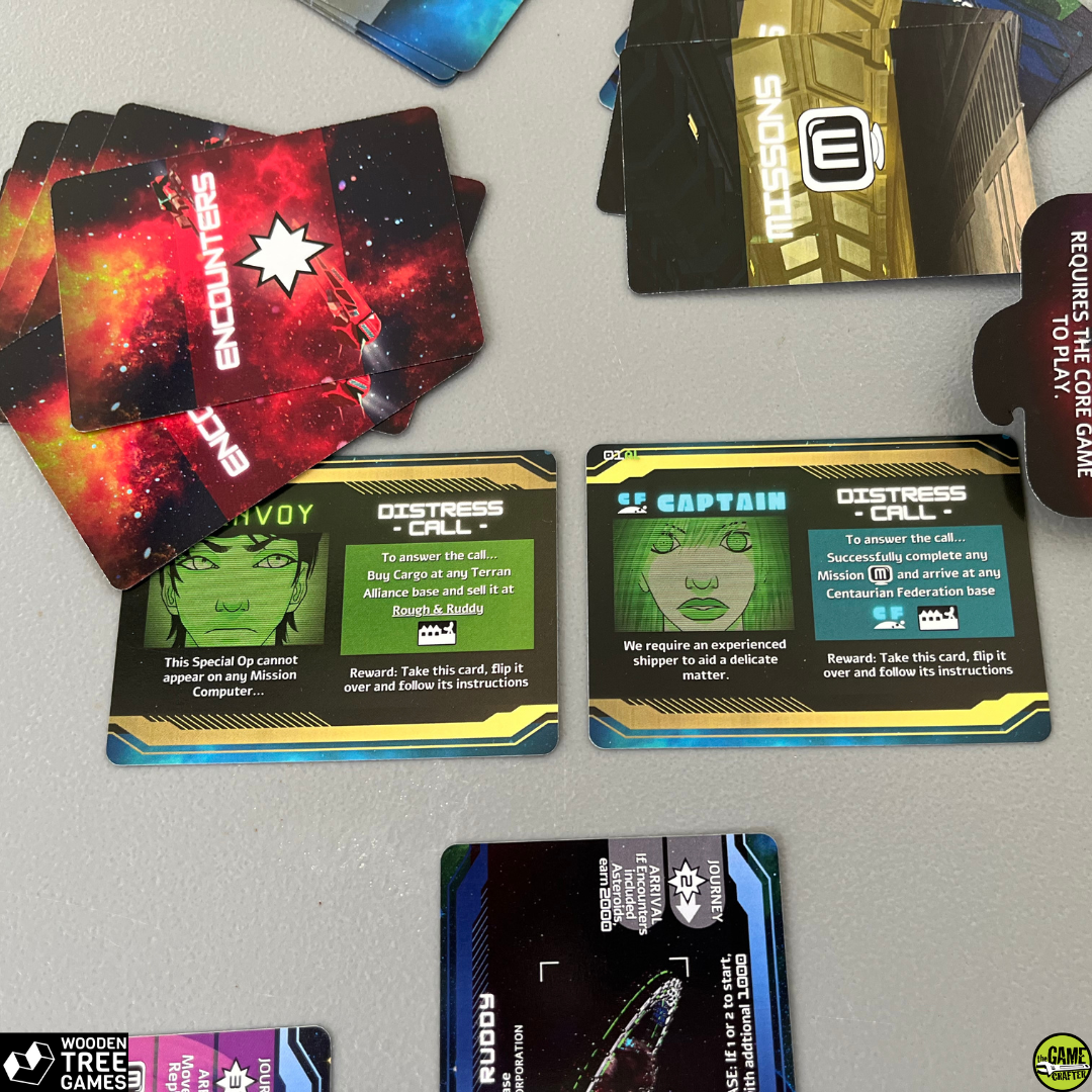 With this story expansion, you and your adversary can uncover the secrets of an ancient mystery. Answer distress calls, investigate rumors, and much more as you pursue the secret of the alien legend. But don't let the mystery consume you too much. You must continue to earn credits and prove your mettle to maintain your reputation as an independent shipping magnate.