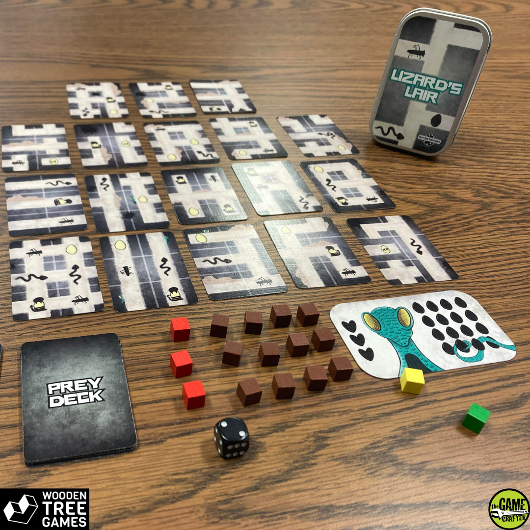 Lizard's Lair ist ein Solitär-Puzzle-Spiel mit Spielsteinen in einem Tin. Schlüpfen Sie in die Rolle einer sich schlängelnden Eidechse, die sich durch ihr Versteck bewegt. Das Ziel des Spiels ist es, Eier zu sammeln, Schlangen auszuweichen und nicht in diesem sich ständig verändernden Untergrund gefangen zu werden.