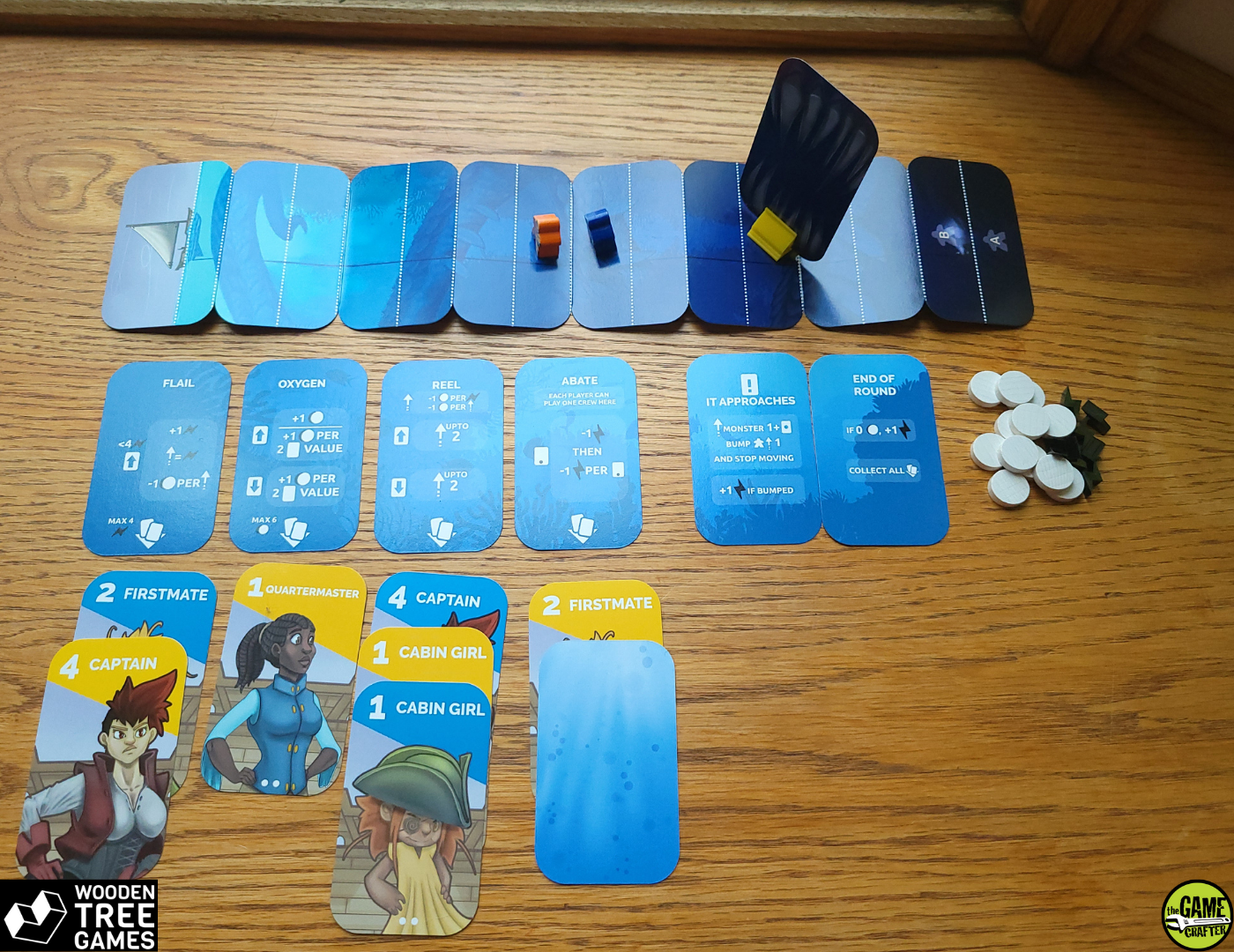 In der Crew-Aufgaben-Phase setzen die Spieler abwechselnd ihre Crew-Mitglieder auf Aufgaben ein, die es ihnen ermöglichen, ihrem Taucher Sauerstoff zu geben, ihren Taucher zu bewegen, ihren Taucher hochzuziehen oder zu versuchen, ihren Taucher zu beruhigen und ihre Panik zu reduzieren.