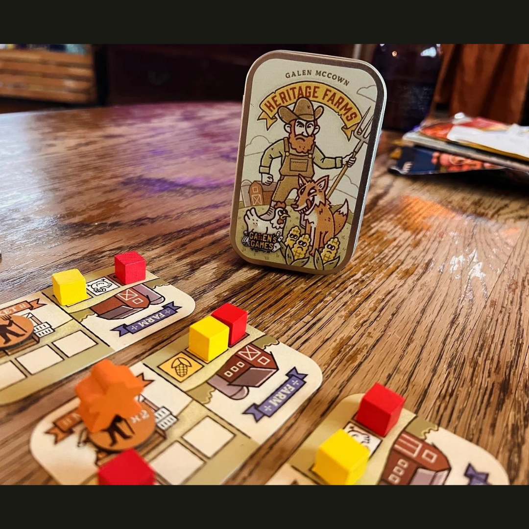 Heritage Farms ist ein Strategiespiel von Galen McCown mit Illustrationen von Jonathan Carnehl.