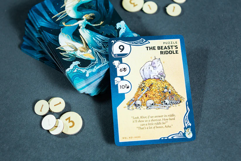 Ein taktisches und kooperatives Kartenspiel für 1–2 Spieler: In Kinfire Delve: Vainglory’s Grotto kämpfst du dich durch das Brunnen‑Deck voller Herausforderungskarten, um Vainglory, den Meister des Brunnens, zu erreichen und dich in einem epischen finalen Kampf zu stellen.