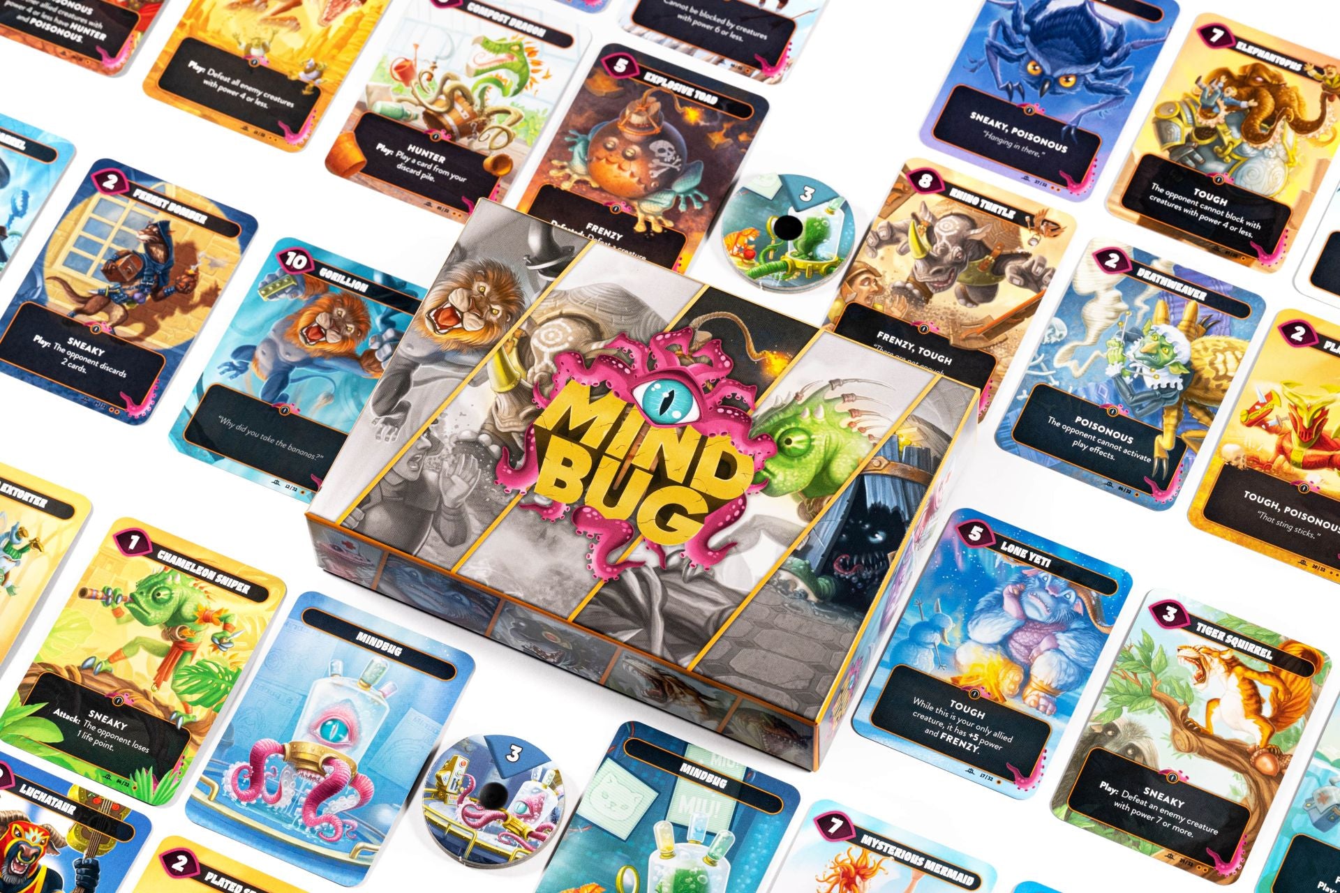 In Mindbug beschwörst du Hybridkreaturen und schickst sie in den Kampf gegen deinen Gegner – aber wenn du eine Kreatur beschwörst, kann dein Gegner einen seiner Mindbugs einsetzen, um die Kontrolle über sie zu übernehmen. Überliste deinen Gegner in einem faszinierenden taktischen Duell, in dem es tödlich sein kann, die besten Karten zu haben und sie zum falschen Zeitpunkt auszuspielen.