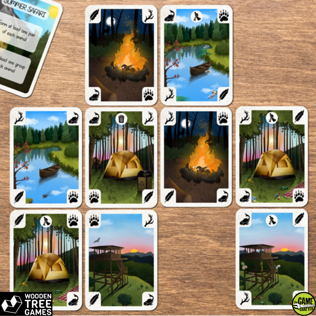 Park Ranger wird über 16 Runden mit 18 handillustrierten Karten gespielt.
