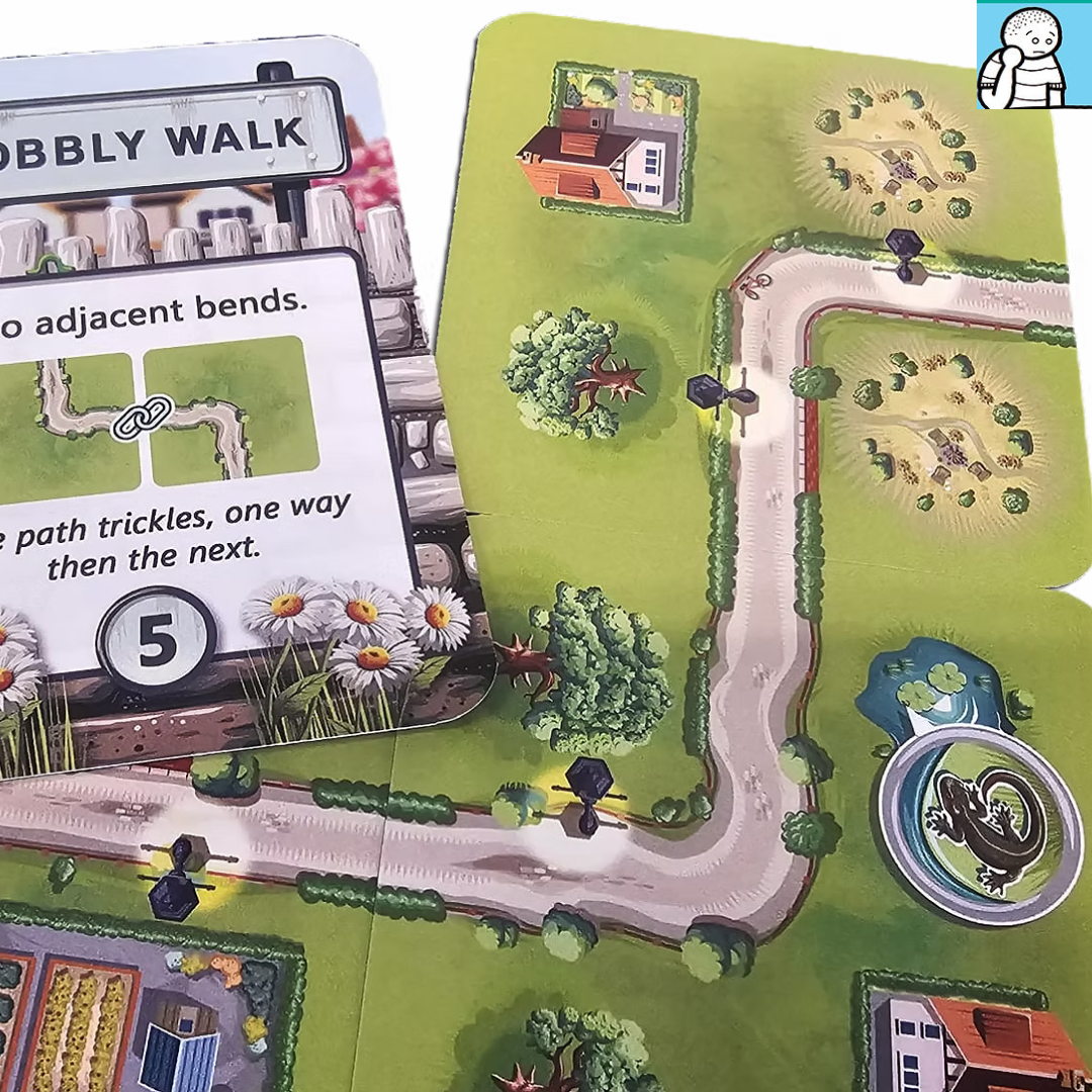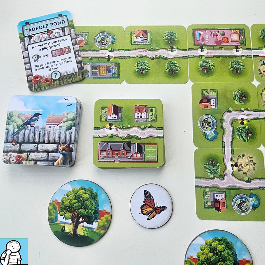 Twittens is a tile laying game for 1-5 players, set in an everyday English suburb. Work your way through the seasons exploring your local twittens, discovering their houses, wildlife, allotments, playgrounds, railways and electrical substations. Complete your wanderings and get home in time for tea.